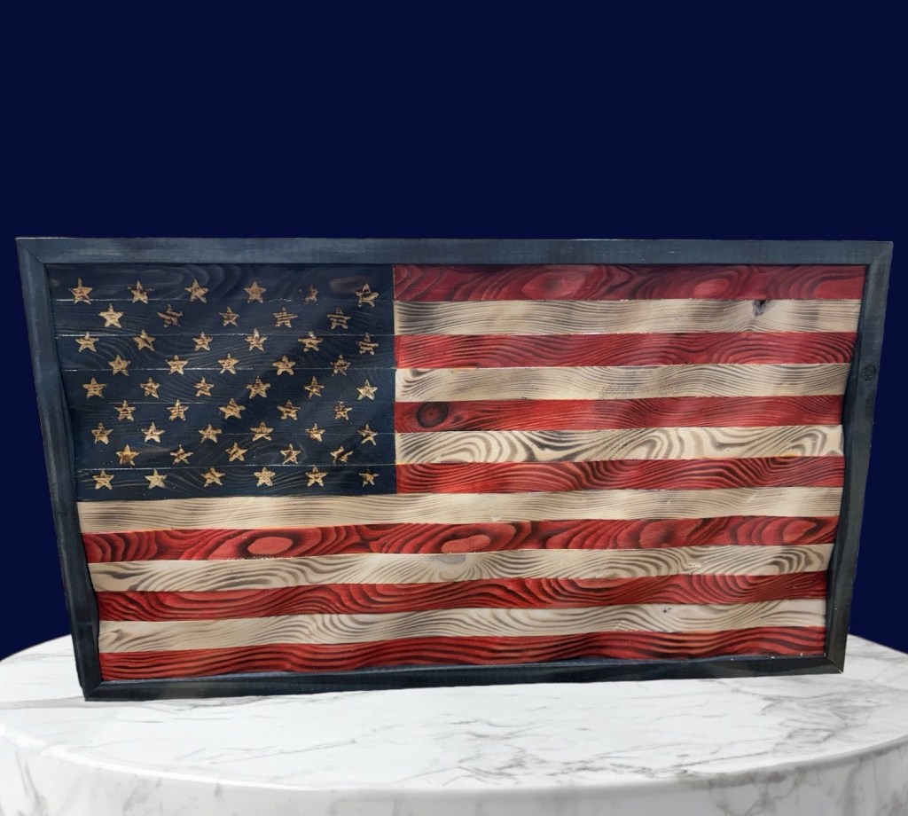 American Flag- Solid wood framed, handcrafted, and hand painted wavy flag.